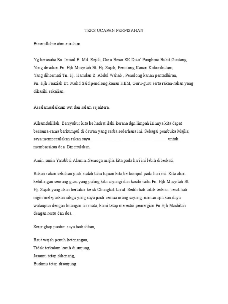 Kami memberikan contoh pantun perpisahan ini agar kamu bisa mengirimkan nya kepada tema. Telus kata buat anak dara Tuai padi di hujung bendang,. Teks ucapan majlis persaraan guru besar. Mohon pinjam beberapa rangkap untuk majlis perpisahan guru saya. Saya gunakan pantun ini persaraan pengetua saya, terima kasih banyak2! 15 rangkap pantun klasik yang bertemakan perpisahan. Mohon izin untuk perpisahan guru saya nnti. Teks ucapan guru ( tuan badan )nak bersara. Perpisahan sendiri bukanlah suatu hal yang tidak . Seorang teman minta karangkan pantun perpisahan untuk rakan sejawat yang akan bersara. 15 rangkap pantun klasik yang bertemakan perpisahan. Setiap ada pertemuan pasti ada perpisahan. Pantun perpisahan lucu moden pantun persaraan dan perpisahan pantun. Seloka dan pantun ini dititipkan buat ustazah zabedah bt hassan dan puan rosmah bt jamil (sekolah kebangsaan semenyih) yang bersara wajib .